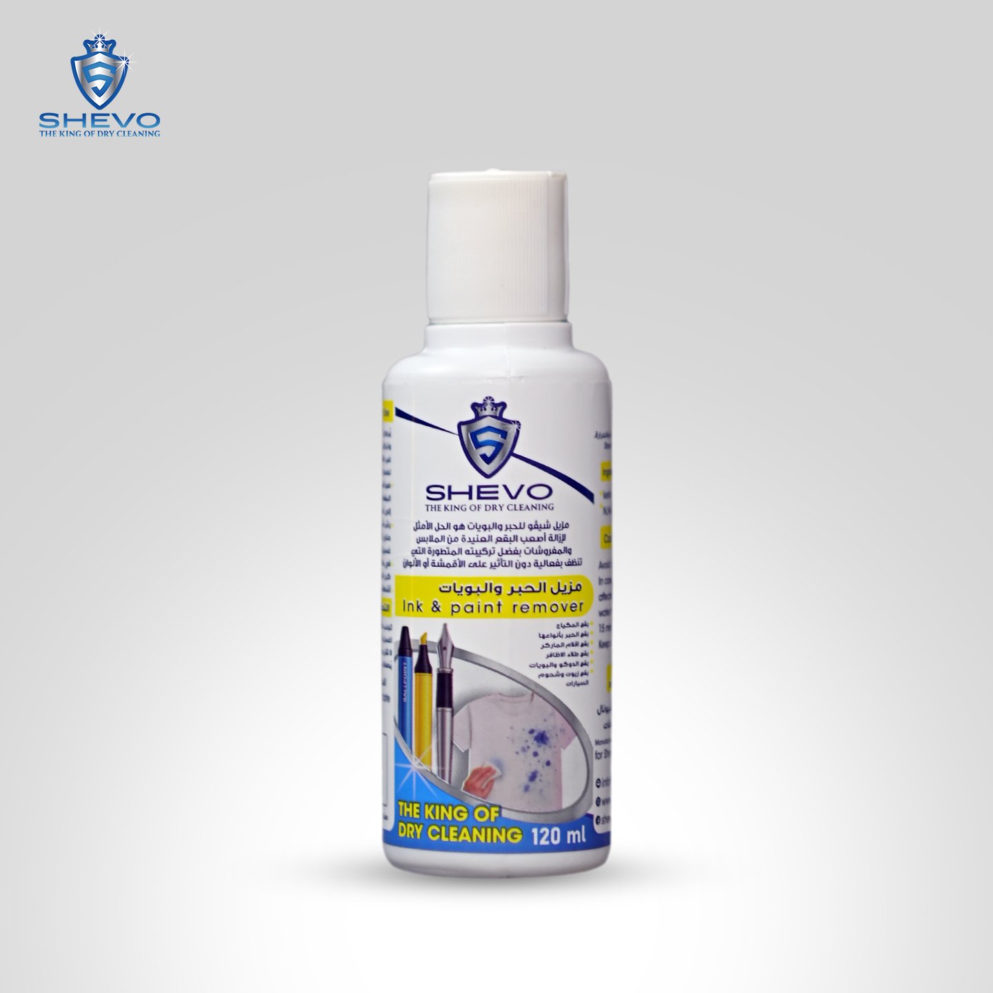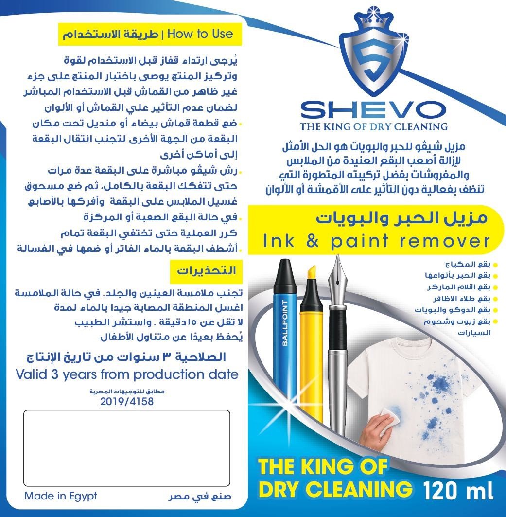 Shevo Ink & Paint Remover is the ultimate solution for removing the toughest stains from clothes and fabrics, thanks to its advanced formula that cleans effectively without affecting fabrics or colors.